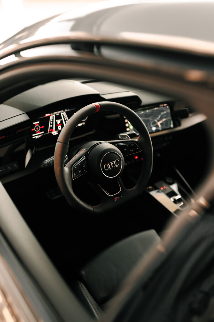 Avec son moteur cinq cylindres emblématique et son allure sportive, l’Audi RS3 est conçue pour les amateurs de sensations fortes.